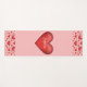 Destei's red heart shape in different sizes on a blush pink background colour. There is also a personalizable text area over the big heart in the middle.