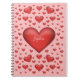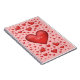 Destei's pattern of red hearts in different sizes on a blush pink background colour. There is a personalizable text area on the big heart in the middle.