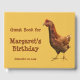 Easily personalise or remove the text on this fun birthday guest book which features a lovely brown Rhode Island Red hen. A smaller chicken in on the back. This bird is perfect for nature lovers, farmers and cooks!