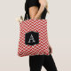 Red Herringbone Chevrons Pattern with Monogram Tote Bag