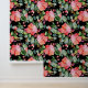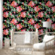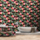 Red Hibiscus Eucalyptus Greenery on Black Wallpaper
