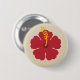 This button features a trendy and stylish red Hibiscus, a colourful tropical flower.