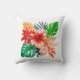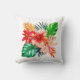 Red Hibiscus flower and Monstera leaves Cushion