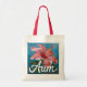 This is a pretty pink hibiscus flower budget bag. The artwork features a digital painting image of a hibiscus flower with the word Aum written in script. The flower has large, pink petals and a yellow centre. The background is a soft blue. The word Aum is written in white script and is near the bottom of the image. You can change the image by adding an image of yours with the Personalise button.