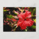 A hibiscus blossom amid red-edged leaves. Part of a garden hedge in Honolulu, Hawaii.