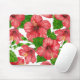 Red hibiscus flowers painted with watercolors, pattern made in Illustrator.