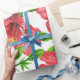 Red hibiscus flowers painted with watercolors, pattern made in Illustrator.