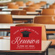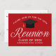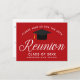 A classy custom class reunion party invitation postcard in red and white for a high school, college, or university. Customise with your school name and graduating class under the elegant calligraphy for great personalised alumni celebration invite postcards.