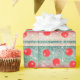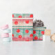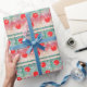 Wrap up your gifts with this festive design featuring red holiday ornaments scattered about a background of pretty Christmas colours.