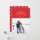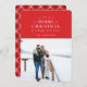Red Holiday Plaid Christmas Photo Card. White typography, single photo, with coordinating holiday plaid pattern backing.