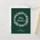 This fun and festive watercolor Christmas postcard can be personalised with a name or title. It features a watercolor Christmas wreath with red holly and berries on a dark green background. The text combines handwritten script and modern serif fonts for an elegant and sophisticated look.