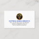 Over at the top corner lies your prestigious name and job title. At the base, you have your business name in blue and the contact details. To the right is a gold "home bulb plug" logo you can use.