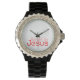 Red Hooked On Jesus Black Rhinestone Watch