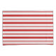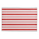 Red stripes of varying thickness on bright white look have a classic breezy style.