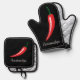 Red hot chilli pepper drawing personalised kitchen oven mitt & pot holder set