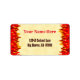 Custom, address labels with retro western red and brown letters with graphic art of red and orange flames on each side on a faux grunge background. Or delete the text for a blank address label.