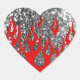 Red Hot Flames on Silver Glitter Look Heart Sticker