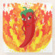 A red and hot pepper cartoon character. Original design with fire flames in the background.