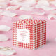Simple yet elegant Houndstooth Favour Boxes with a trendy red and white houndstooth pattern background. Easy to customise with your wedding details. For more customisation options, click on the Customise It button.