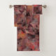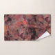 Texture of red-toned patches on grainy background with grey tones and dark parts that can cause either a dark depth perception or tone of something slightly polished.