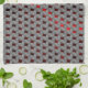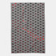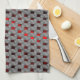 Red image under gray plates, rectangular shapes tea towel