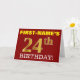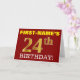 This birthday greeting card design features a message like "FIRST-NAME’S 24th BIRTHDAY!", with the "24th" having a faux/imitation gold-like colour appearance. The recipient’s name on the front can be personalised, and the front background is coloured red. It also features a personalised birthday greeting message on the inside. A birthday greeting card like this could perhaps be given to somebody in celebration of their twenty fourth birthday. [~Z0000184]