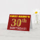 This birthday greeting card design features a message like "FIRST-NAME’S 30th BIRTHDAY!", with the "30th" having a faux/imitation gold-like color appearance. The recipient’s name on the front can be customized, and the front background is colored red. It also features a personalized birthday greeting message on the inside. A birthday greeting card like this could perhaps be given to somebody in celebration of their thirtieth birthday. [~Z0000184]
