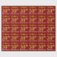 This wrapping paper design features a message like "FirstName’s 30th BIRTHDAY!", with the "30th" having a faux/imitation gold-like colour appearance. The name can be customised, and the background is coloured red. It could perhaps be used when wrapping gifts being given for somebody’s thirtieth birthday. [~Z0000178]