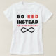 Tee for autistic people or allies supporting autistic people with the text "Go red instead - autism acceptance" above an infinity symbol. A positive autism tee!
