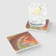 The coasters are gorgeous, a quality feel and heavy weight. They look like a precious archeological find. A rustic stone juxtaposed with a modern floral black and white print. I like the way the print goes slightly imperfect on the cut stone edges giving them a kind-of natural beauty.
