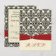 This red, cream, and black damask reply card has a PRINTED ON ribbon with a PRINTED diamond jewel brooch on it that matches the wedding invitation and other items shown below. If you require any other matching items, please email your request to niteowlstudio@gmail.com. Existing matching items are shown below.
