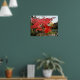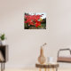 Colorful poster print featuring a photo image of bright, red maple leaves and a red, miniature shrine in a Japanese garden. Customize your poster size as desired. Photo: Point Defiance Park Japanese Garden