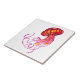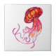 a decorative watercolor artwork of a red and orange coloured jellyfish with pink tentacles on a ceramic tile.