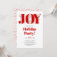 This stunning Red Joy with berries Christmas Holiday party invitation is the perfect way to invite your guests to your upcoming Holiday celebration. It features the word 'JOY' in a festive font with red berries and greenery, as well as your custom text underneath. The back of the invitation includes a cheerful pattern of red polka dots and snowflakes for a truly festive look. Make sure that your guests have all the information they need to attend your special event by including the details of your celebration on this beautiful invitation. The cover has been designed using some assets from Freepik.com