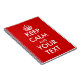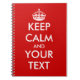 Red Keep calm notebooks | Customisable text. Cute vintage gift for school, home and office. Personalizable text and background colour. Create your own Keep calm and carry on slogan parody.