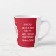 Customisable KING CHARLES III CORONATION Latte Mug in RED, with CUSTOMIZABLE TEXT based on Christian Bible verse in Matthew 20:26. Design shows the rose of England, the thistle of Scotland, the daffodil of Wales and the shamrock of Northern Ireland in a beautiful red and blue floral emblem. The quote reads WHOEVER WANTS TO RULE OVER YOU MUST FIRST BE YOUR SERVANT, which is based on Matthew 20:26, which is repeated on the front and back. You can PERSONALIZE THIS TEXT with your own wording, eg. add your family/organisation name. The curved wording reads ICH DIEN (I serve - royal motto) and you can ADD YOUR NAME here instead. This King Charles III Coronation latte mug would make great commemorative gift for you to celebrate this momentous occasion in British royal history with your family, friends, colleagues and clients. Matching gifts available.