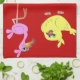 Red Kitchen Towel With Animals Pink Flamingo Chick