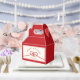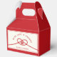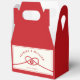 Modern minimalist double happiness couple's knot of union, love and marriage in bright red and ivory white wedding favour box.