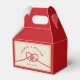 Modern minimalist double happiness couple's knot of union, love and marriage in bright red and barley beige wedding favour box.