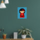 Cute Japanese Kokeshi traditional doll in red and blue design. Very cute Japanese theme