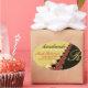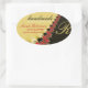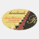 Red Lace & Gold Satin Handmade Label Oval Sticker
