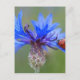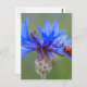 This product features photography of a red and black ladybird or beetle on a blue cornflower