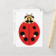This postcard is embellished with a simple graphic ladybug in vivid red.