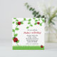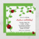 Cute red ladybugs climbing on green vines are featured on this ladybug birthday invitation.