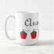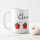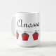 Wonderful gift for the Bryn Mawr alumna or student. Anassa kata in script font wraps around the mug. Five red hand drawn lanterns in a row below the words. A special gift to congratulate someone on an achievement!