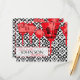 Elegant red chinese lanterns over black and white damask print.