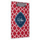 Red Lattice Pattern Navy Monogram Clipboard