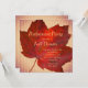 Fall retirement party invitations. A big red leaf is the background image on square stationery. Could be used for any type of party, for male or female honoree, in the autumn season.