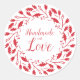 Red Leaves & Branches Wreath Handmade with Love Quote Design for Crafters Round Stickers.