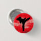 Martial Arts woman on a red stormy background pinback button.